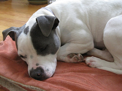 "Excuse me, madam, do not call me a Pitty Bull... why, I am an American Pit Bull Terrier and I do like to be treated with respect. Whilst I shan't say whether or not I have fully grasped the concept of this thing you refer to as 'crate training', I will say that I am highly intelligent, extremely athletic & fiercely loyal. And do not forget that I am fabulous on a leash and love to engage in a good game of ball."
